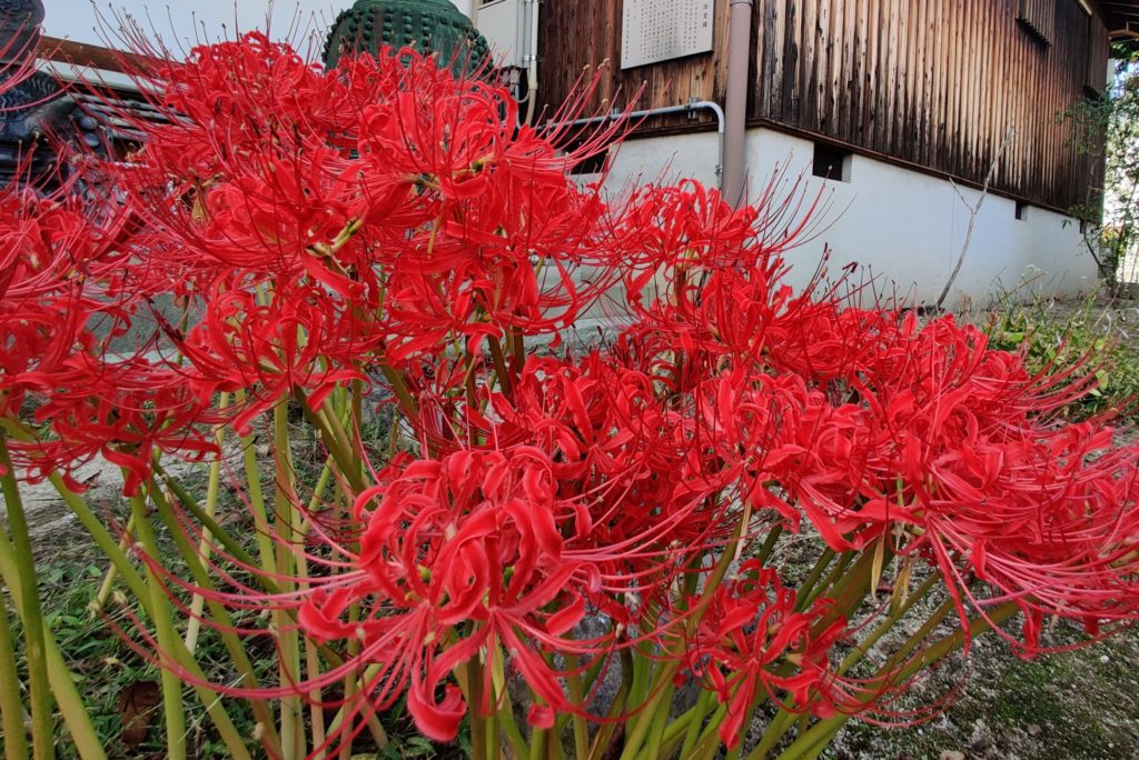 とりあえず、お寺の秋の彼岸花の写真を貼ってみました。